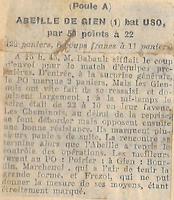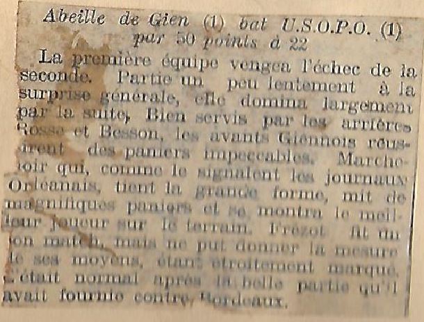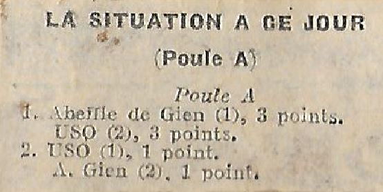 Saison 1928-1929 : Résultats de la journée de Championnat de l’Orléanais opposant l’Abeille de Gien à l’U.S.O.P.O
