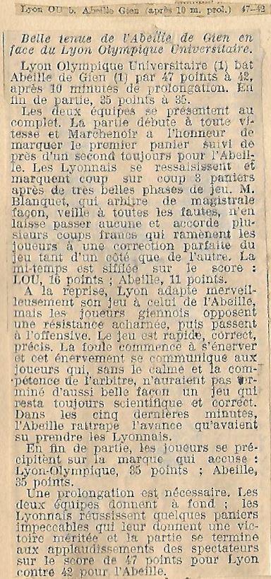 Match Abeille de Gien (1) contre Lyon Olympique Universitaire (1)