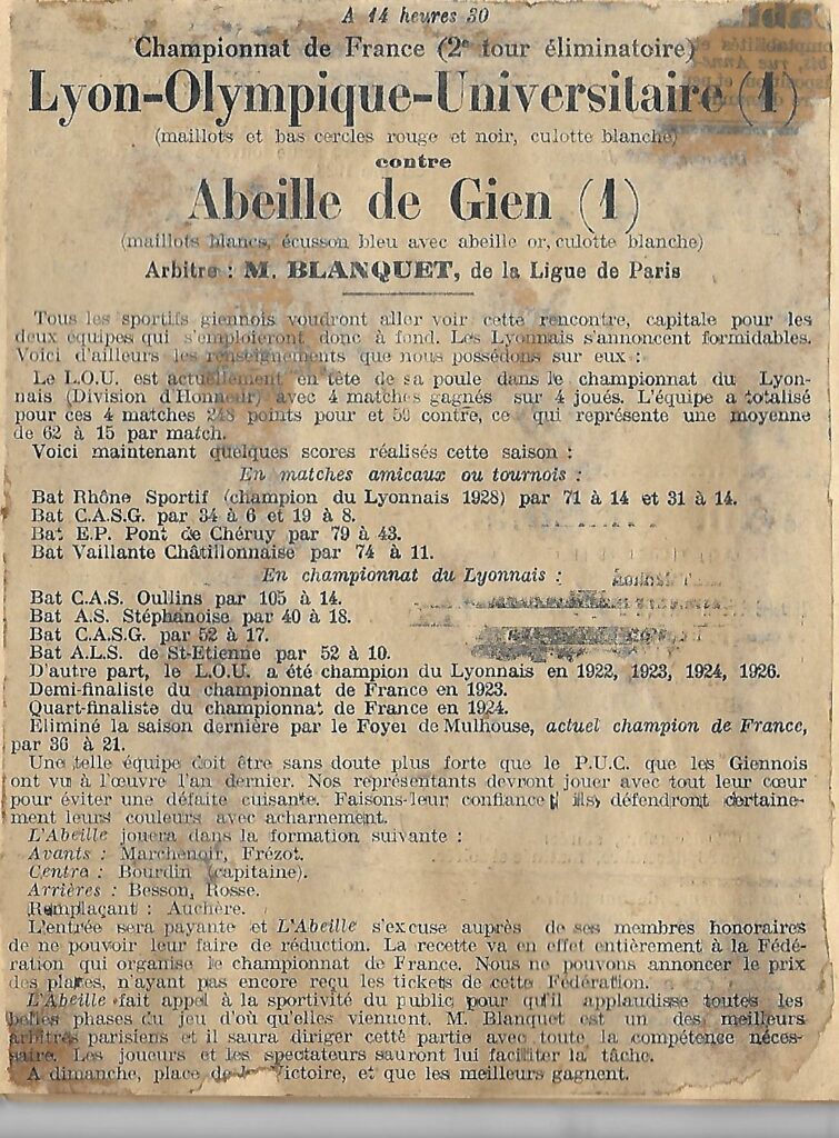 Source : Archives de l’Abeille de Gien