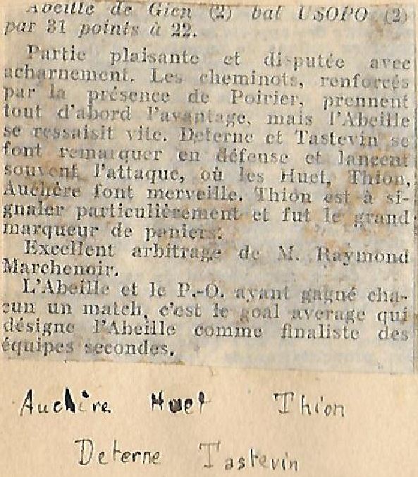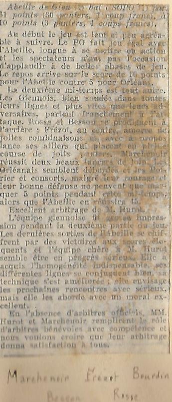 Saison 1928-1929 : En Championnat de l’Orléanais, l’Abeille de Gien bat l’U.S.O.PO. à Orléans
