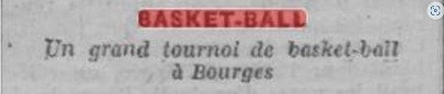 Saison 1929-1930 : Grand Tournoi de Basket-Ball à Bourges le 6 Octobre 1929