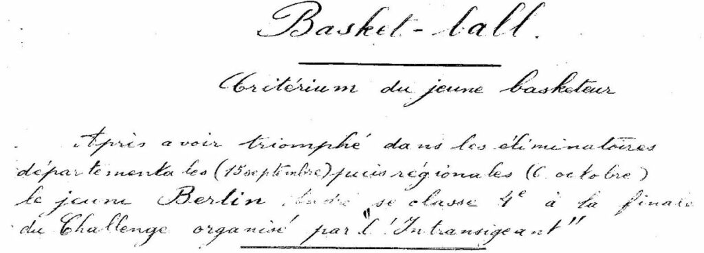 Saison 1935-1936 : Le Jeune André Bertin (Abeille de Gien) se classe 4ème au Critérium National du Jeune Basketteur