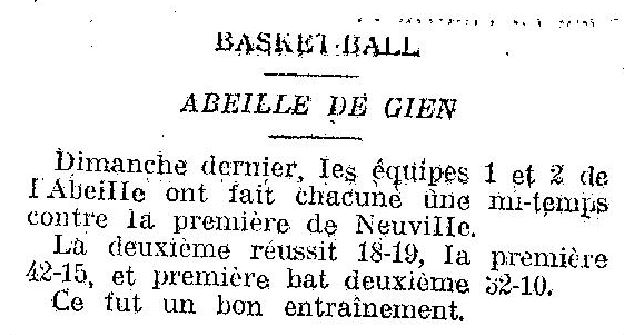 Saison 1935-1936 : Résultats des Matches d’entraînement Amicale de Neuville – Abeille de Gien