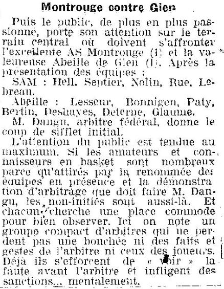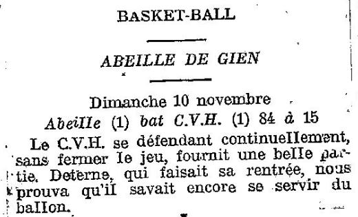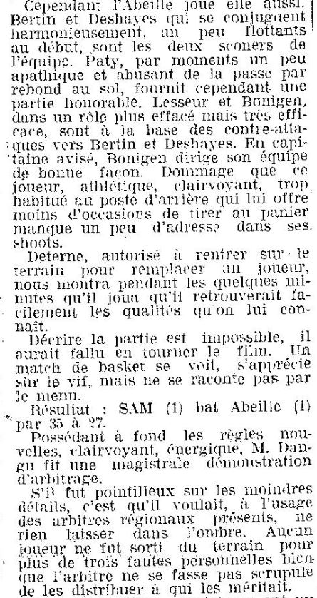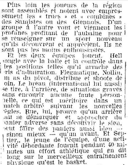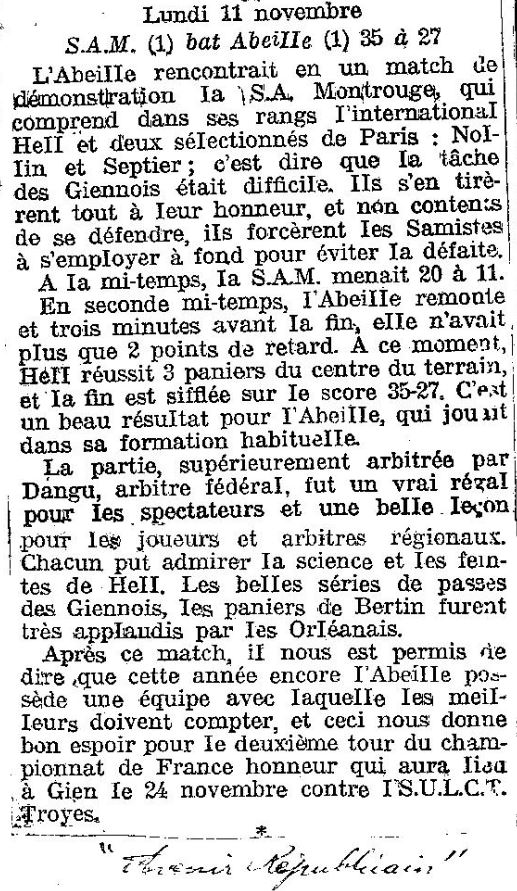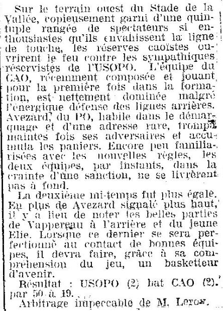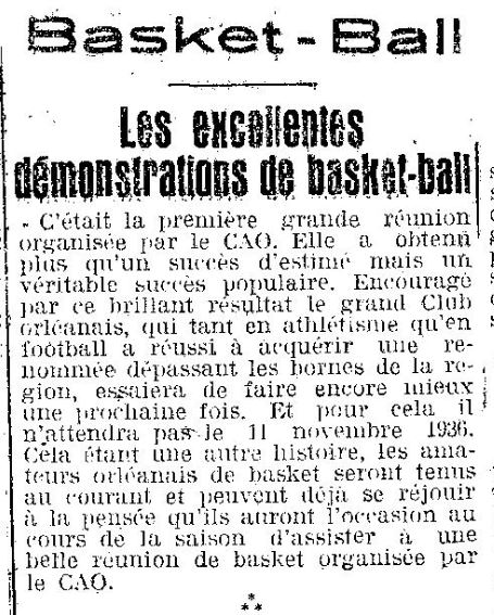 Saison 1935-1936 : Résultats des Matches de Démonstration de Basket organisés à Orléans