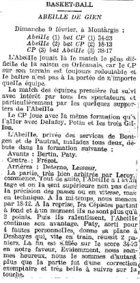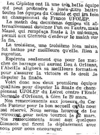 Saison 1935-1936 : Résultats des Matches du Championnat de l’Orléanais Cercle Pasteur de Montargis contre Abeille de Gien