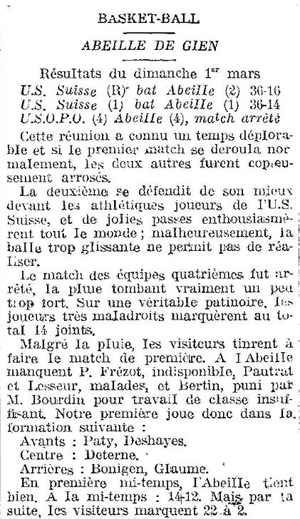 Saison : 1935-1936 : Résultats de la Journée du 1er Mars 1936