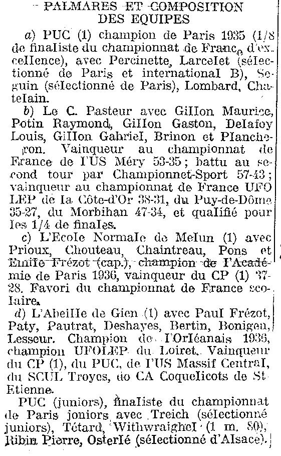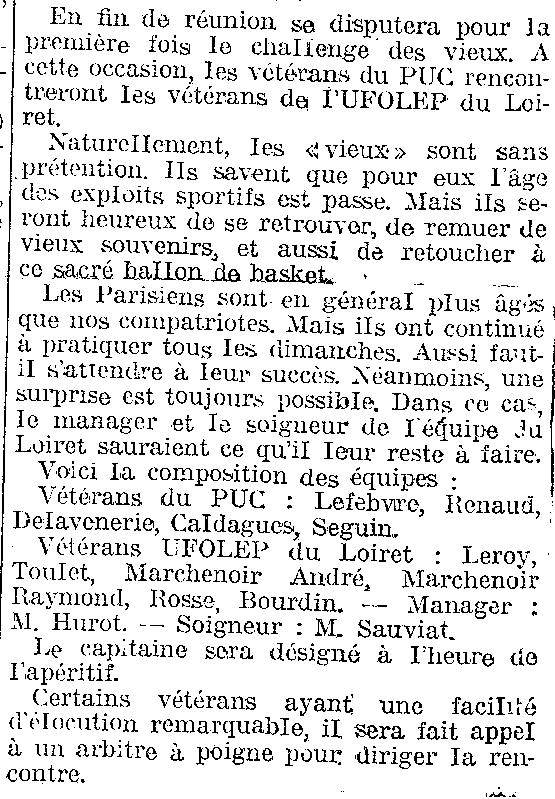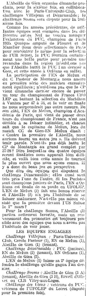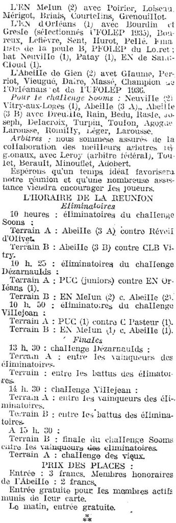 Saison 1935-1936 : Organisation d’un Grand Tournoi de Basket par l’Abeille de Gien