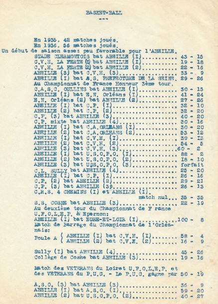 Saison 1936-1937 : Résultats et Statistiques des Basketteurs de l’Abeille de Gien pour la saison 36-37