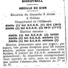 Saison 1937-1938 : Résultats des Matches de l’Abeille de Gien du 6 Février 1938