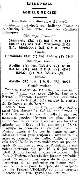 Saison 1937-1938 : Résultats du Tournoi de La Ferté Saint Aubin