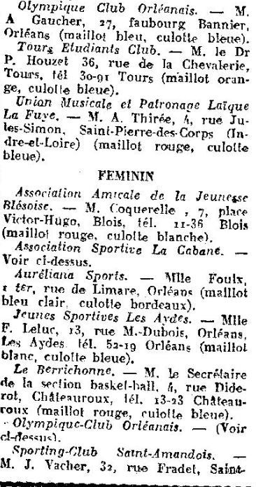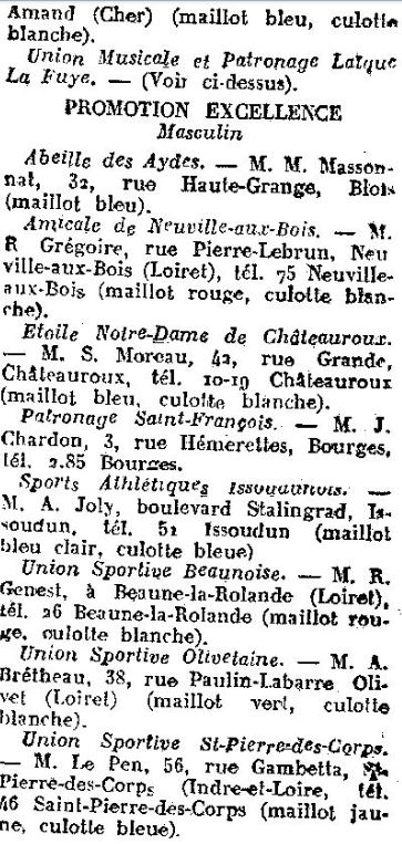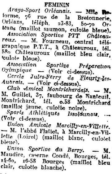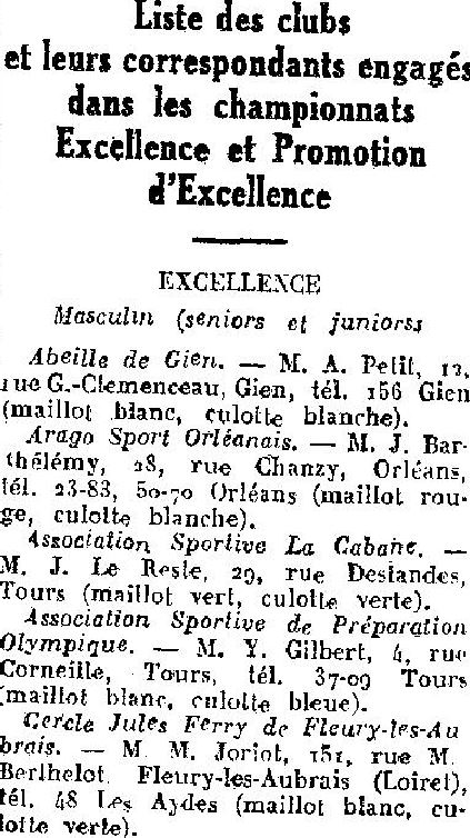 Saison 1948-1949 : Clubs engagés en Championnat de l’Orléanais