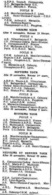 Saison 1952-1953 : Calendrier de l’ASPO Tours en Division Nationale Masculine