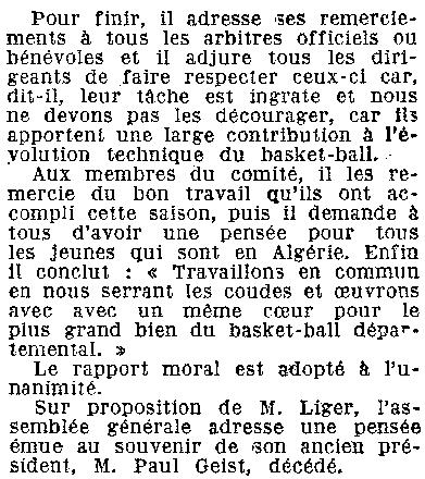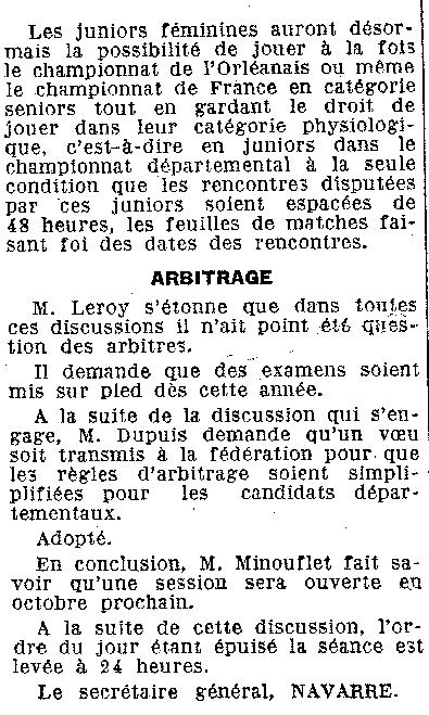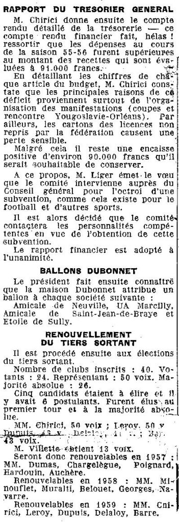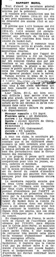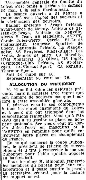 Saison 1955-1956 : Assemblée Générale du Comité du Loiret de Basketball