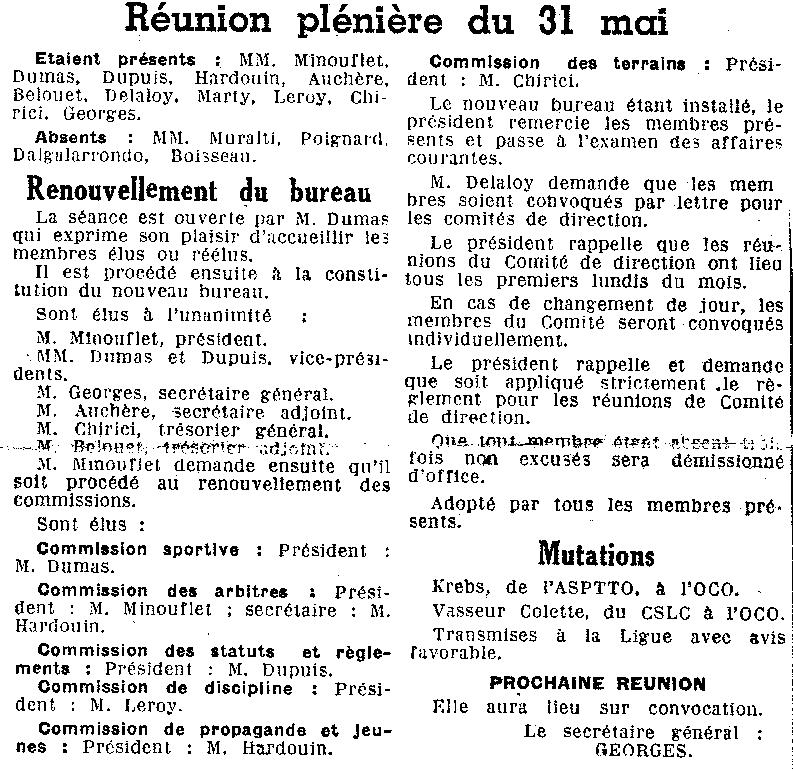 Saison 1958-1959 : Réunion Plénière du Comité du Loiret le 31 Mai 1958