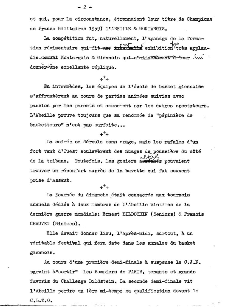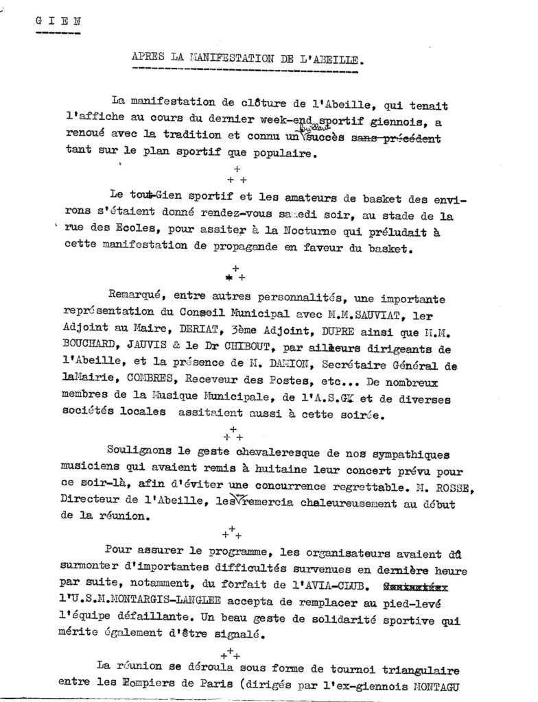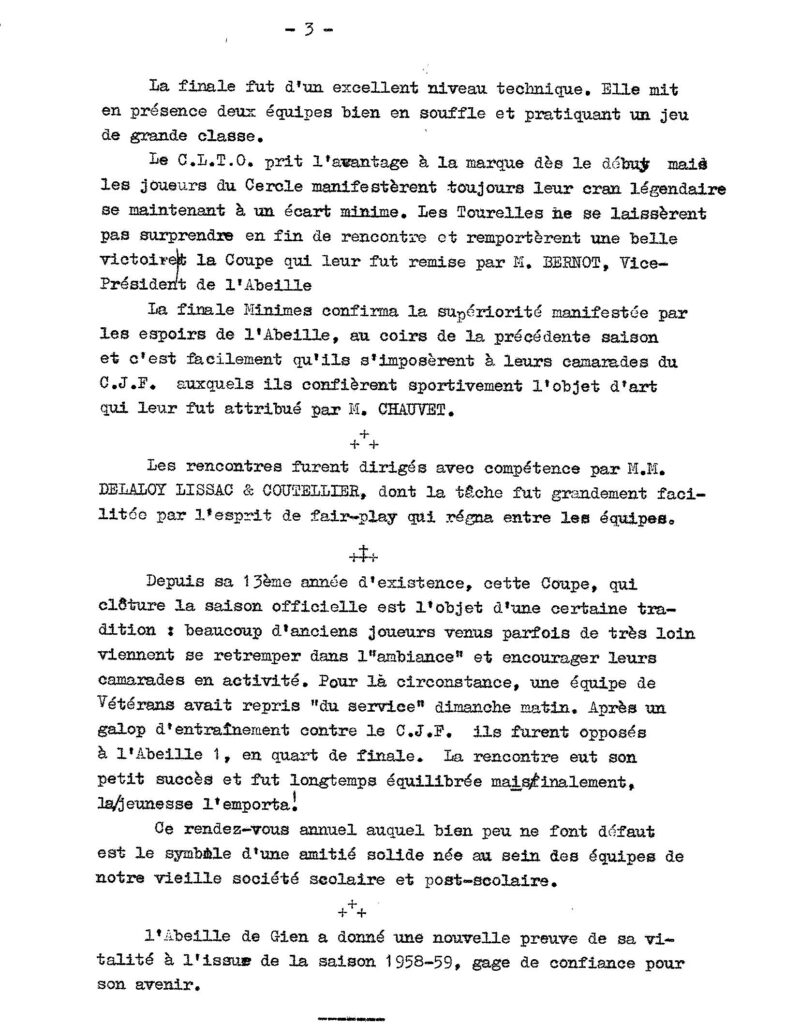 Saison 1958-1959 : Compte-Rendu de la Manifestation des 23 et 24 Mai 1959 organisée par l’Abeille de Gien