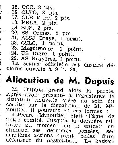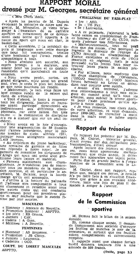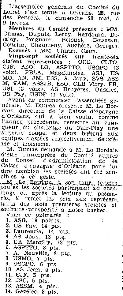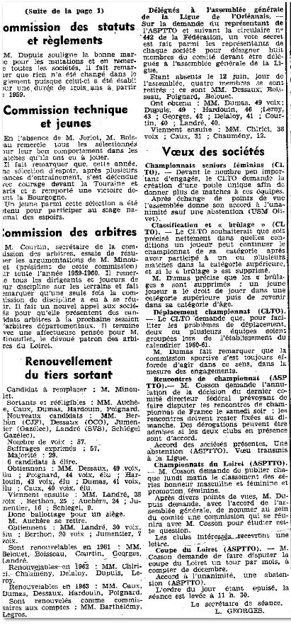 Saison 1959-1960 : Assemblée Générale du Comité du Loiret de Basket-ball