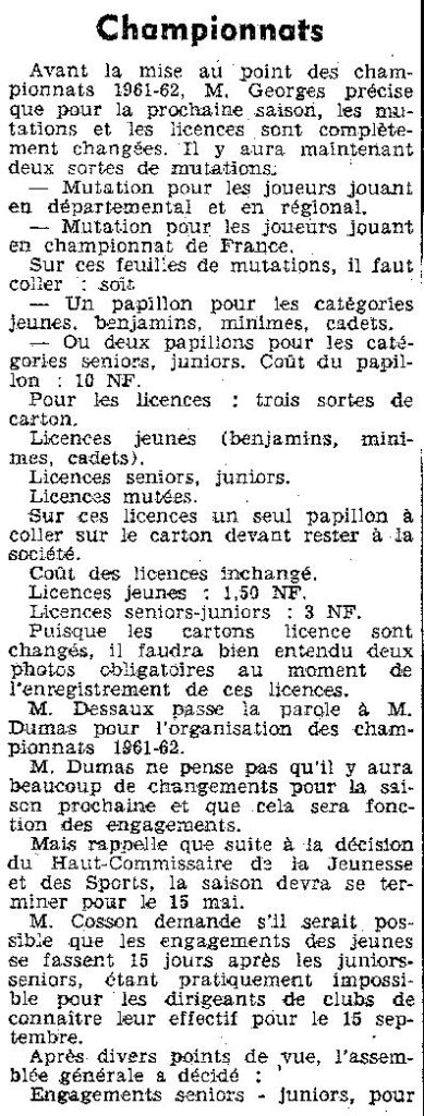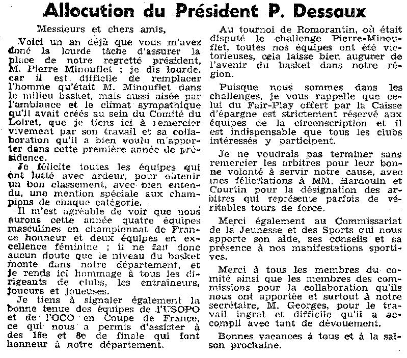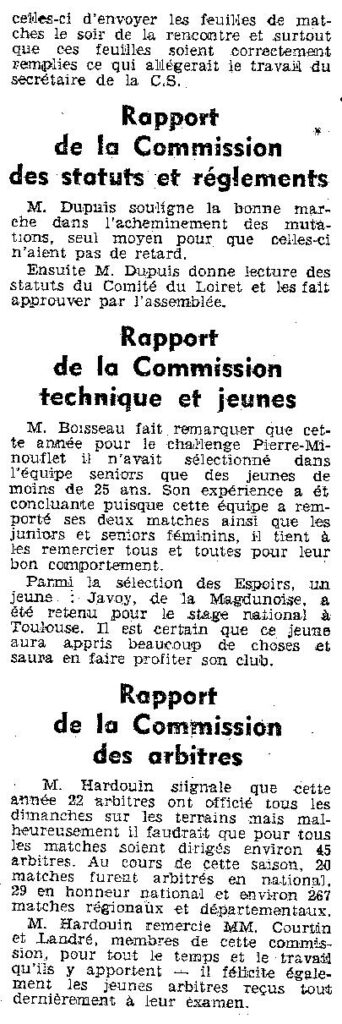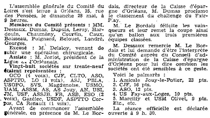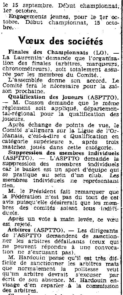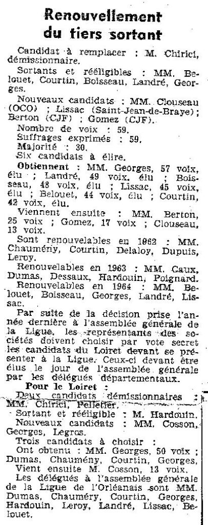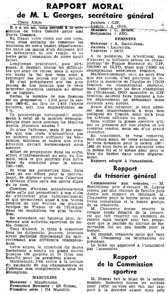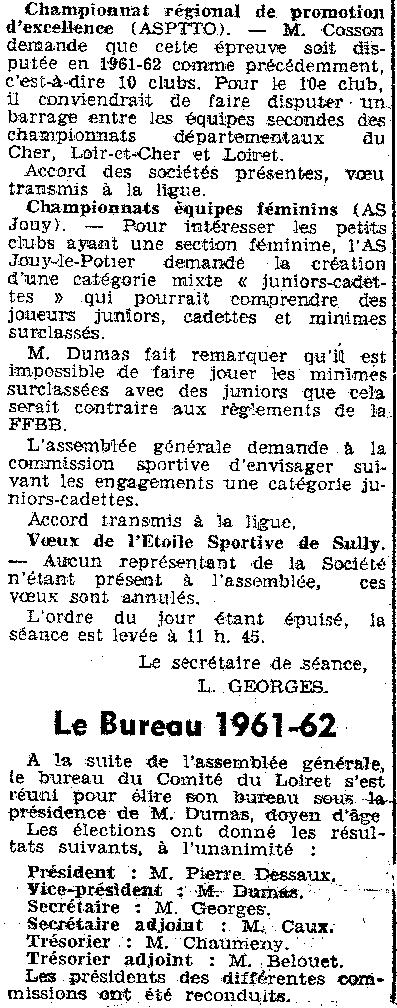 Saison 1960-1961 : Assemblée Générale du Comité du Loiret de Basket-Ball