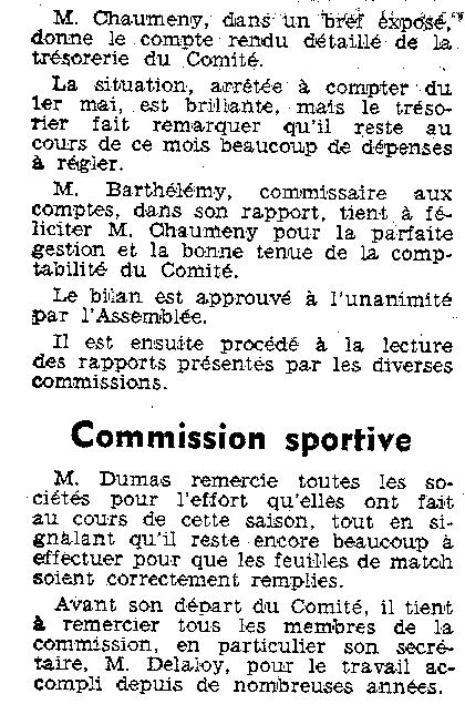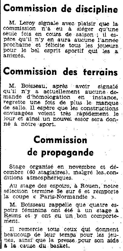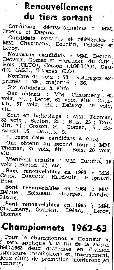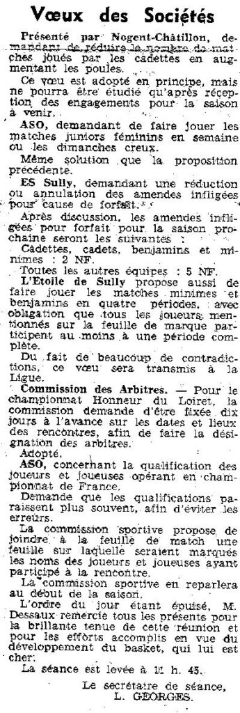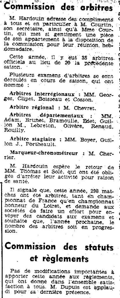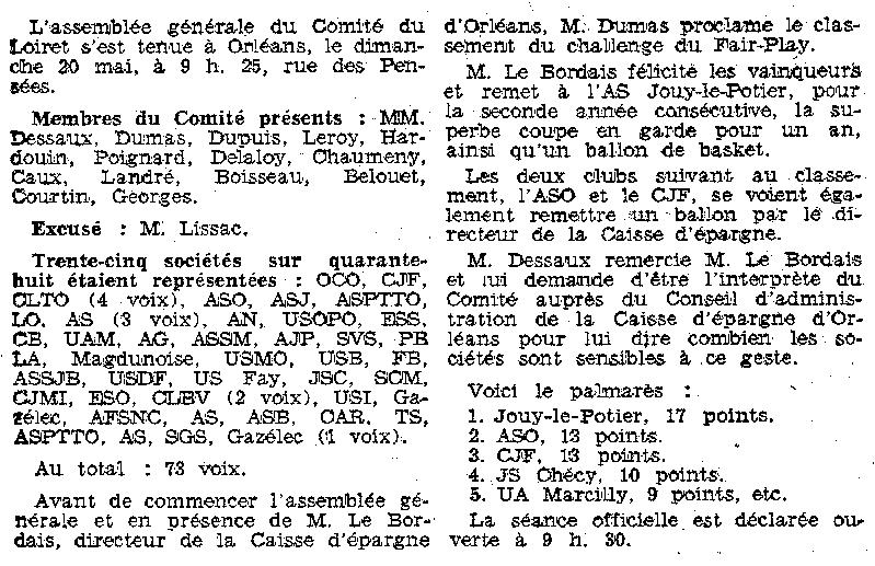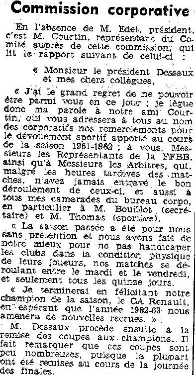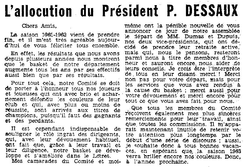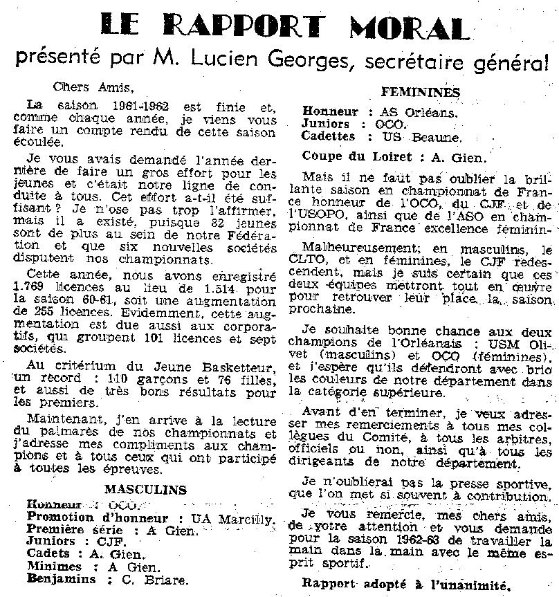 Saison 1961-1962 : Assemblée Générale du Comité du Loiret de Basket-Ball