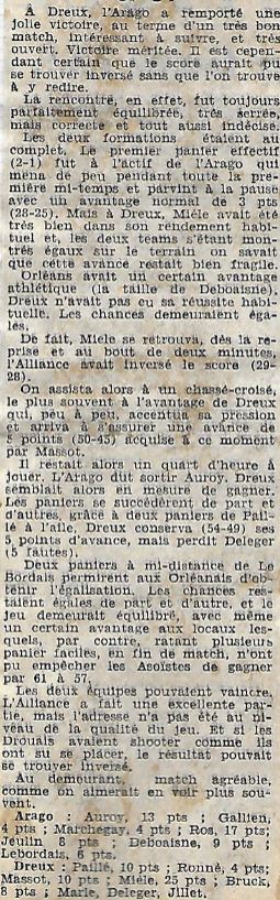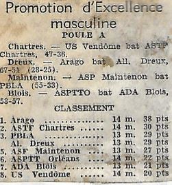 Saison 1962-1963 : En Promotion Masculine du Championnat de la Région Fédérale du Centre, l’Arago d’Orléans s’impose face à l’Alliance de Dreux