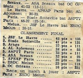 Saison 1962-1963 : Résultats de la dernière journée du Championnat de France Excellence Féminine