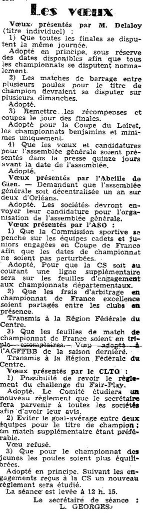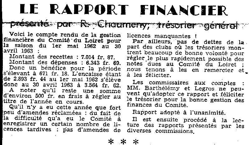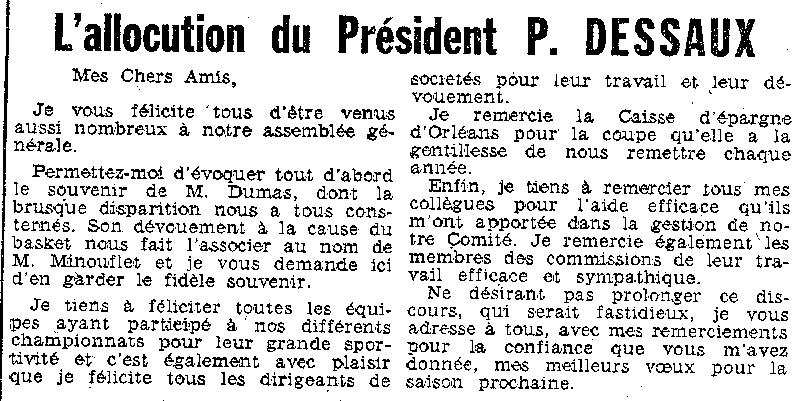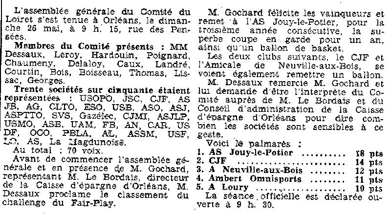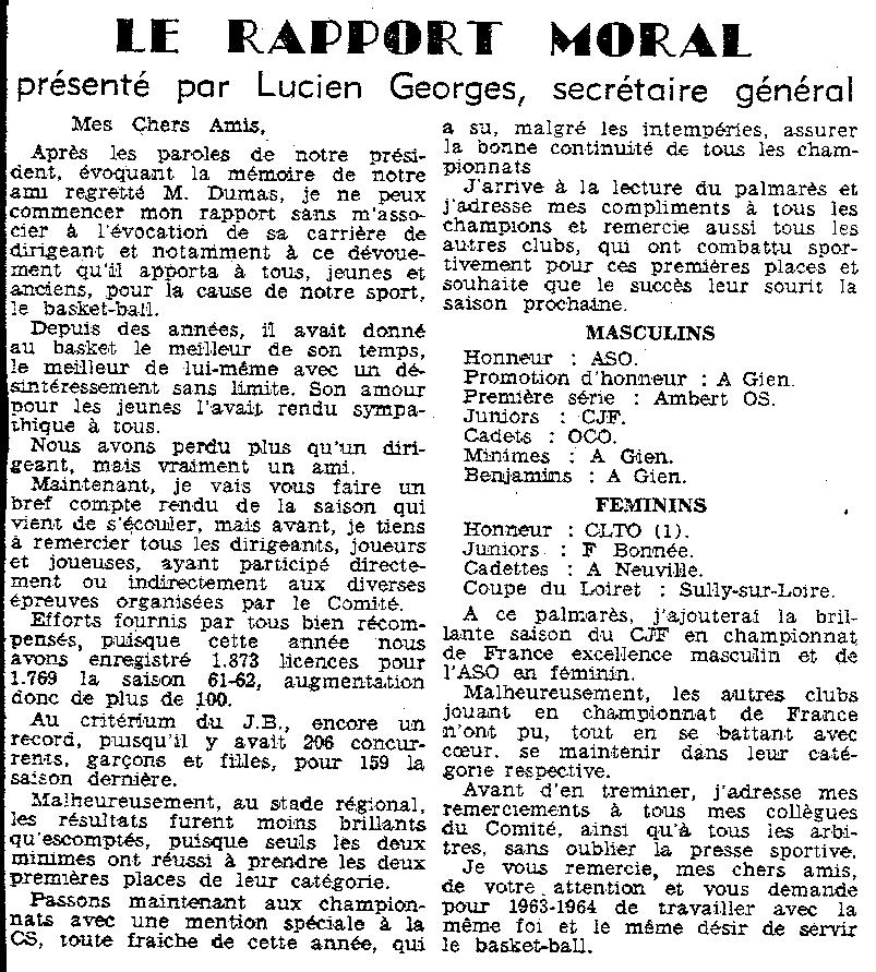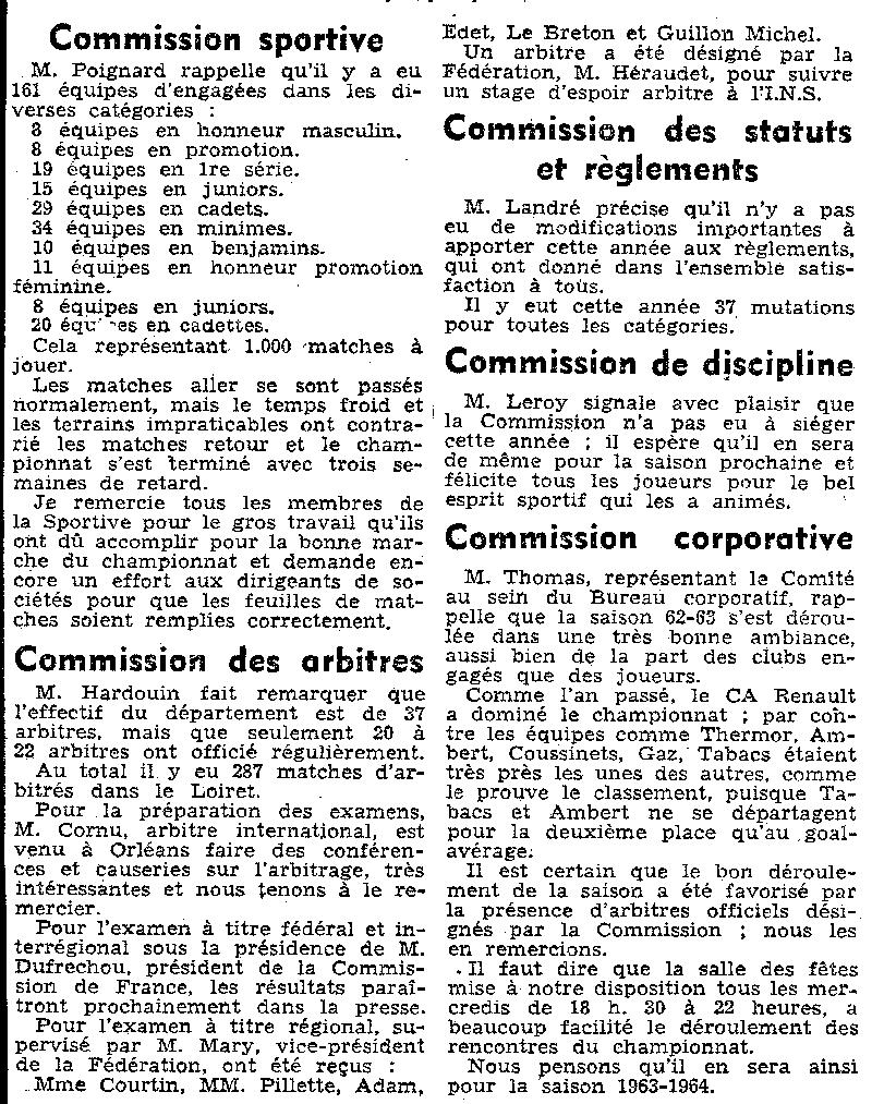 Saison 1962-1963 : Assemblée Générale du Comité du Loiret de Basket-Ball