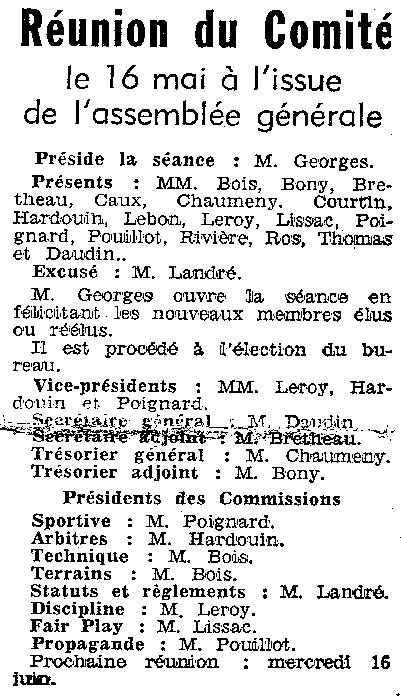 Saison 1964-1965 : Réunion du Comité du Loiret du 16 Mai 1965