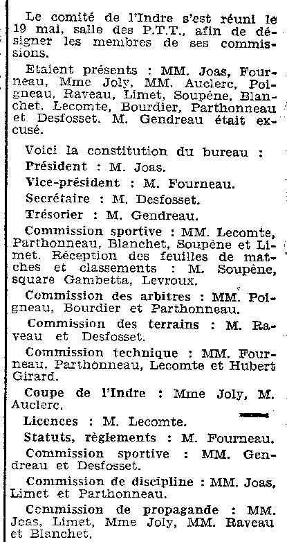 Saison 1964-1965 : Réunion du Comité de L’Indre de Basket-Ball
