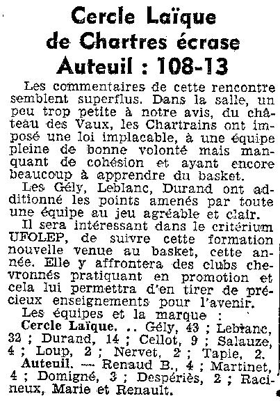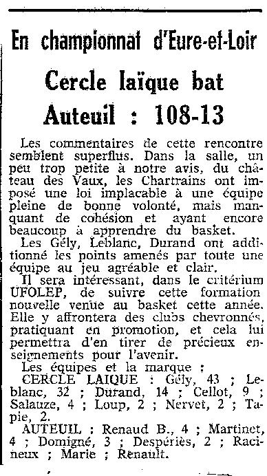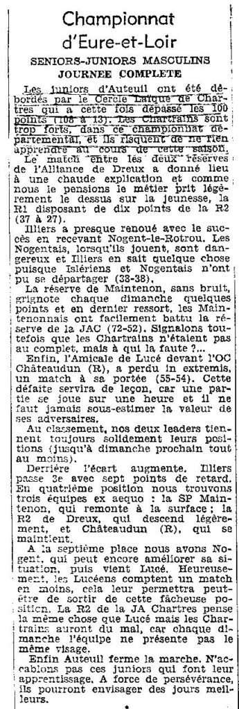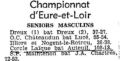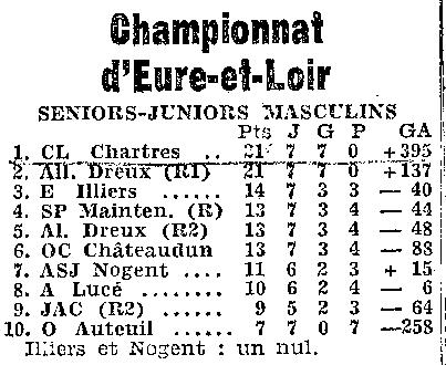 Saison 1965-1966 : Résultats et Classement après la 7ème Journée du Championnat Départemental de l’Eure-et-Loir