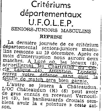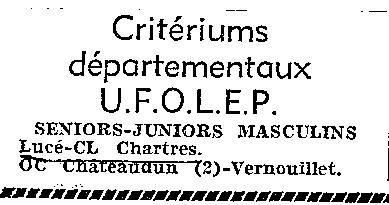 Saison 1965-1966 : Résultats des Critériums Départementaux U.F.O.L.E.P. de l’Eure-et-Loir