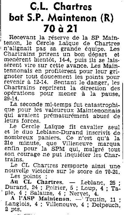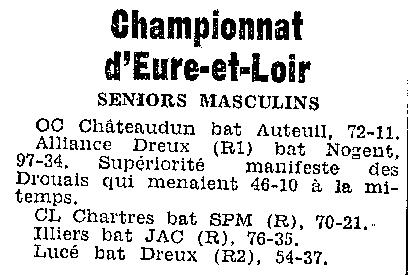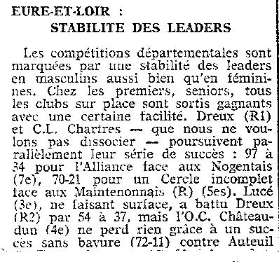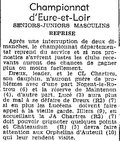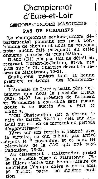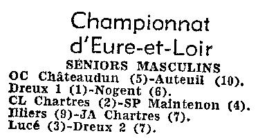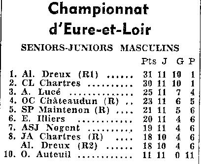 Saison 1965-1966 : Résultats et Classement après la 11ème Journée du Championnat Départemental d’Eure-et-Loir