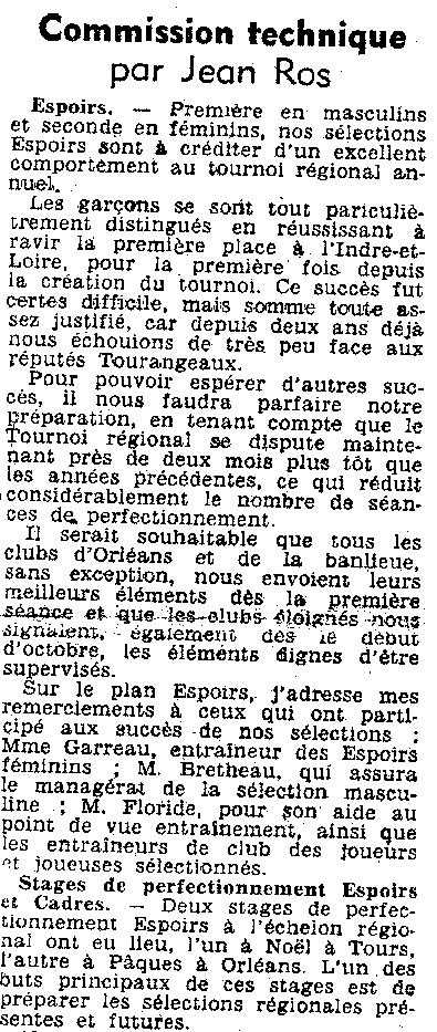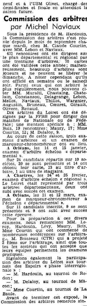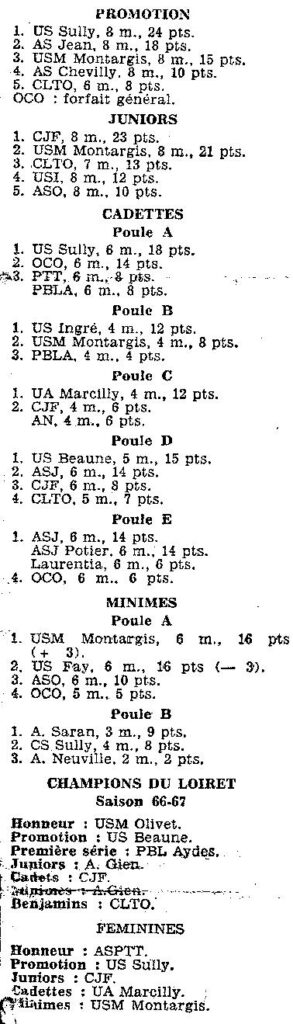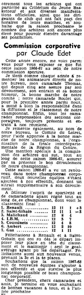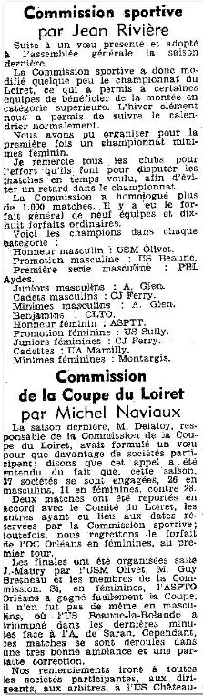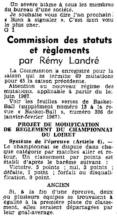 Saison 1966-1967 : Assemblée Générale du Comité du Loiret de Basket-Ball, Rapport des Commissions