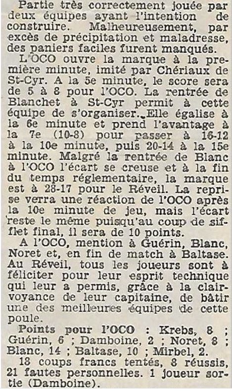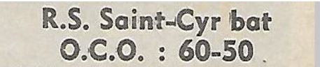 Saison 1970-1971 : En Promotion d’Excellence Masculine B, Le RS St Cyr bat l’OC Orléans
