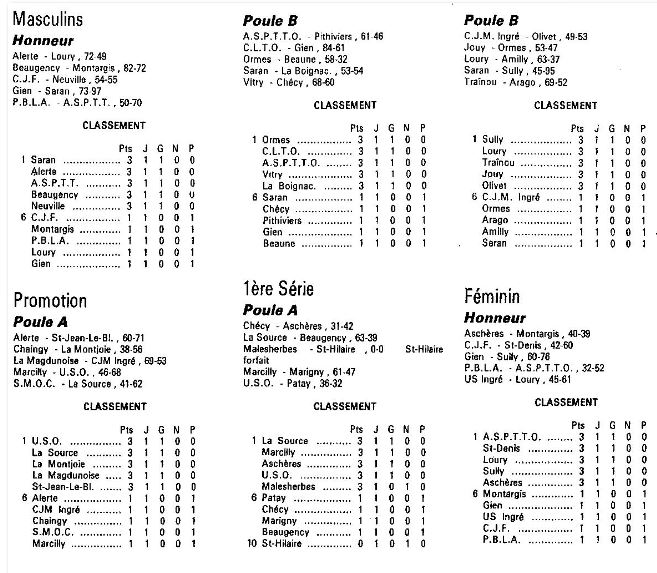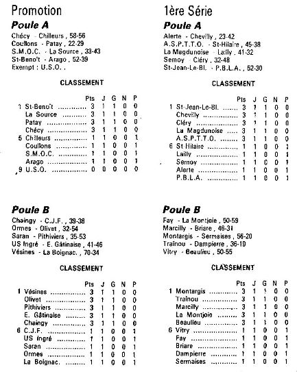 Saison 1986-1987 : Résultats et Classements après la Journée du 5 Octobre 1986 des Championnats Départementaux du Loiret