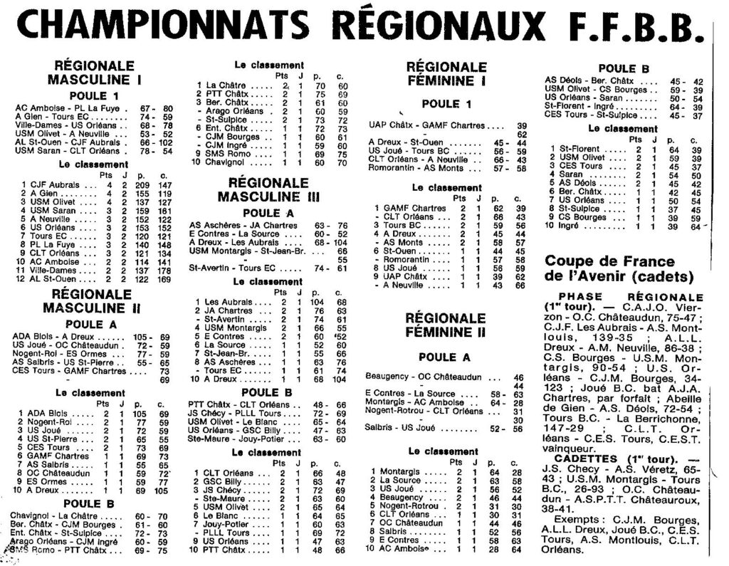 Saison 1986-1987 : Résultats et Classements après la Journée du 5 Octobre 1986 des Championnats Régionaux
