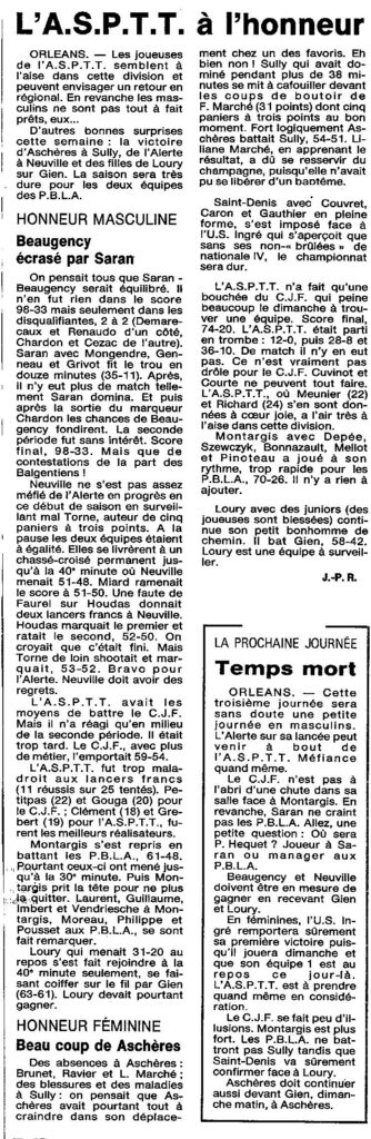 1986Saison 1986-1987 : Commentaires de JP Rossignoles sur la Journée du 12 Octobre 1986 des Championnats Départementaux du Loiret