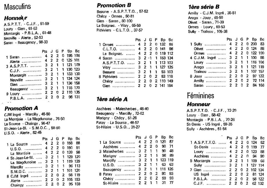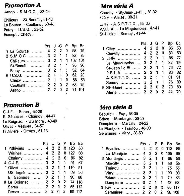 Saison 1986-1987 : Résultats et Classements après la Journée du 12 Octobre 1986 des Championnats Départementaux du Loiret