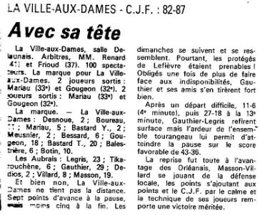 Saison 1986-1987 : Lors de la Journée du 19 Octobre 1986, en Championnat de Régionale Masculine 1, le CJF bat La Ville aux Dames
