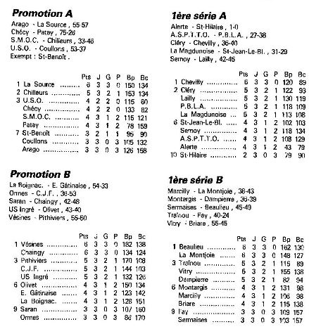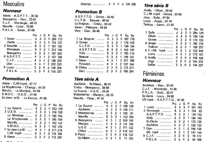 Saison 1986-1987 : Résultats et Classements après la Journée du 19 Octobre 1986 des Championnats Départementaux du Loiret