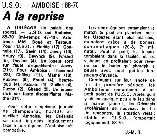 Saison 1986-1987 : Lors de la Journée du 26 octobre 1986, en Championnat de Régionale Masculine 1, L’US Orléans bat Amboise