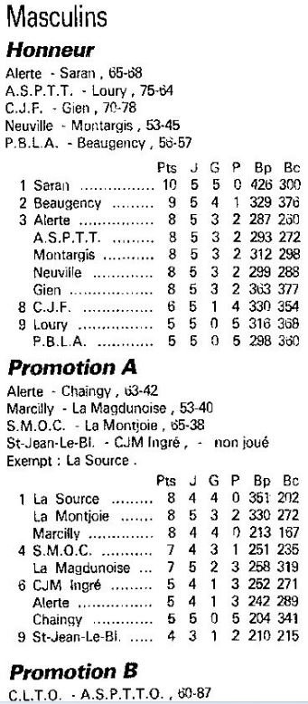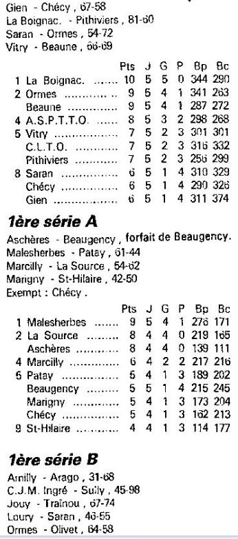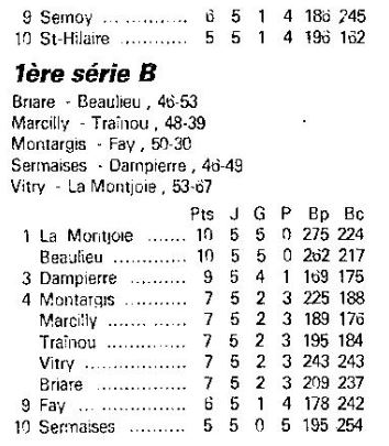 Saison 1986-1987 : Résultats et Classements après la Journée du 9 Novembre 1986 des Championnats Départementaux du Loiret