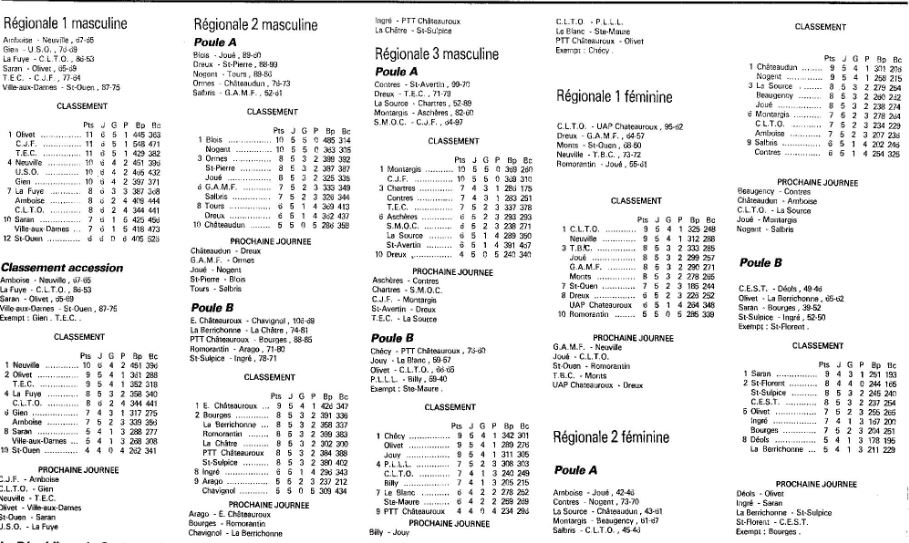 Saison 1986-1987 : Résultats et Classements après la Journée du 9 Novembre 1986 des Championnats Régionaux