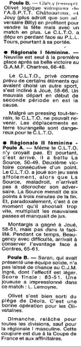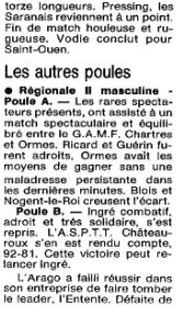 Saison 1986-1987 : Commentaires sur la Journée du 16 Novembre 1986 des Championnats Régionaux