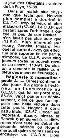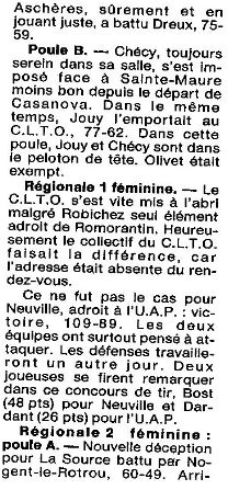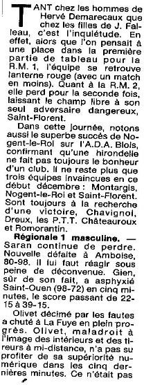 Saison 1986-1987 : Commentaires de JP Rossignoles sur la Journée du 30 Novembre 1986 des Championnats Régionaux