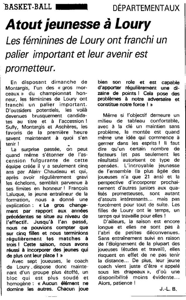 Saison 1986-1987 : Une équipe féminine prometteuse à Loury