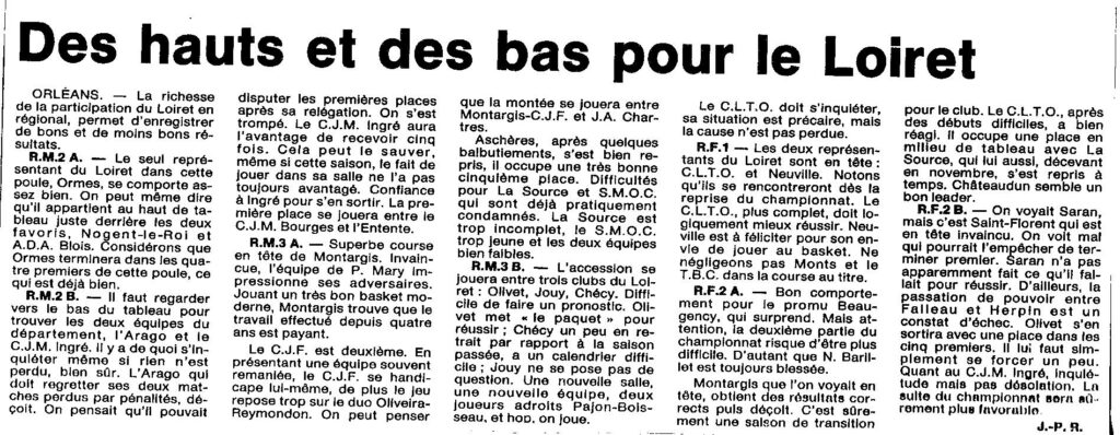 Saison 1986-1987 : Commentaires de JP Rossignoles sur la Journée du 14 Décembre 1986 des Championnats Régionaux