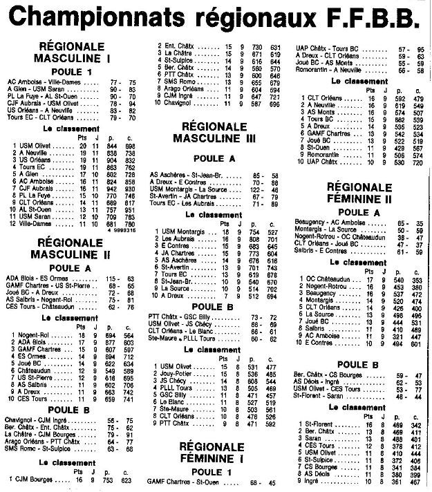 Saison 1986-1987 : Résultats et Classements après la Journée du 14 Décembre 1986 des Championnats Régionaux