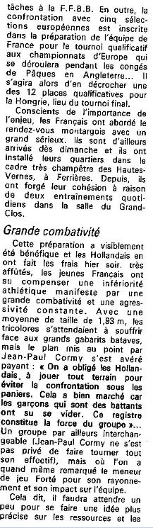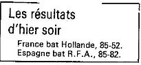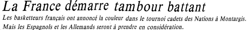 Saison 1986-1987 Tournoi International Cadets de Montargis, Résultats de la 1ère Journée