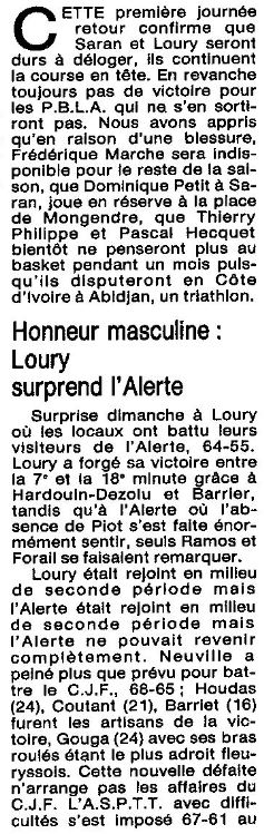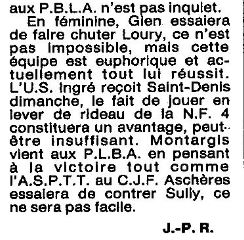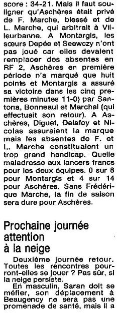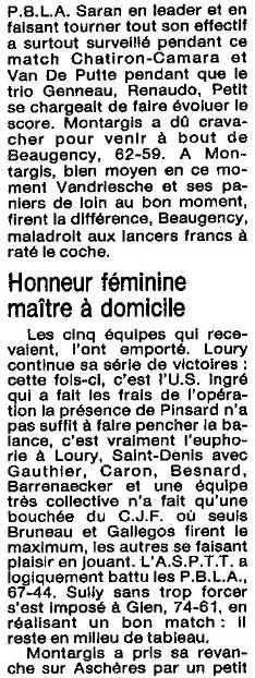 Saison 1986-1987 : Commentaires de JP Rossignoles sur la Journée du 11 Janvier 1987 des Championnats Départementaux du Loiret