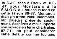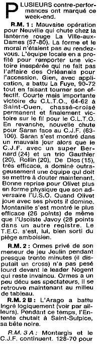 Saison 1986-1987 : Commentaires de JP Rossignoles sur la Journée du 11 Janvier 1987 des Championnats Départementaux du Loiret »