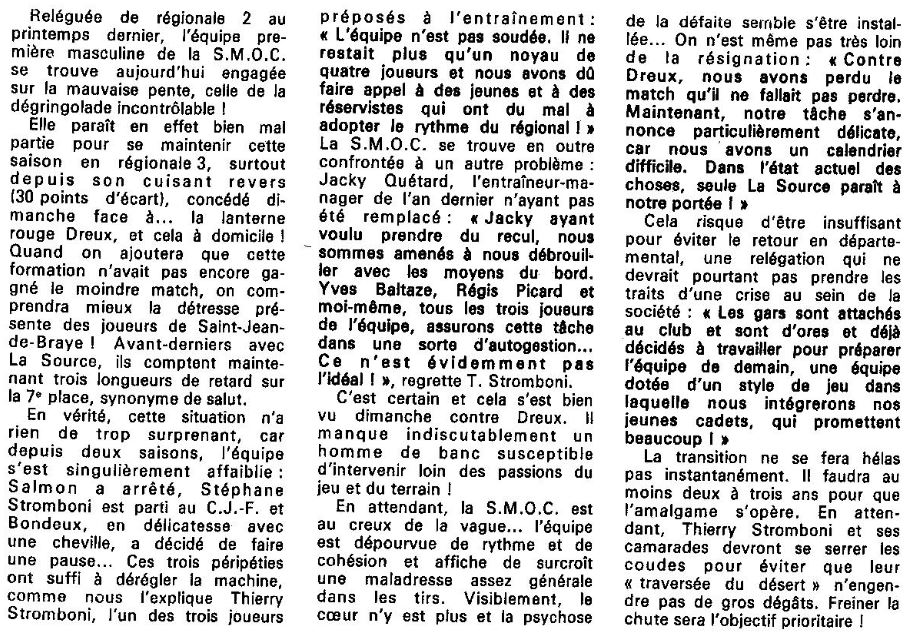 Saison 1986-1987 : La SMOC au Creux de la Vague…